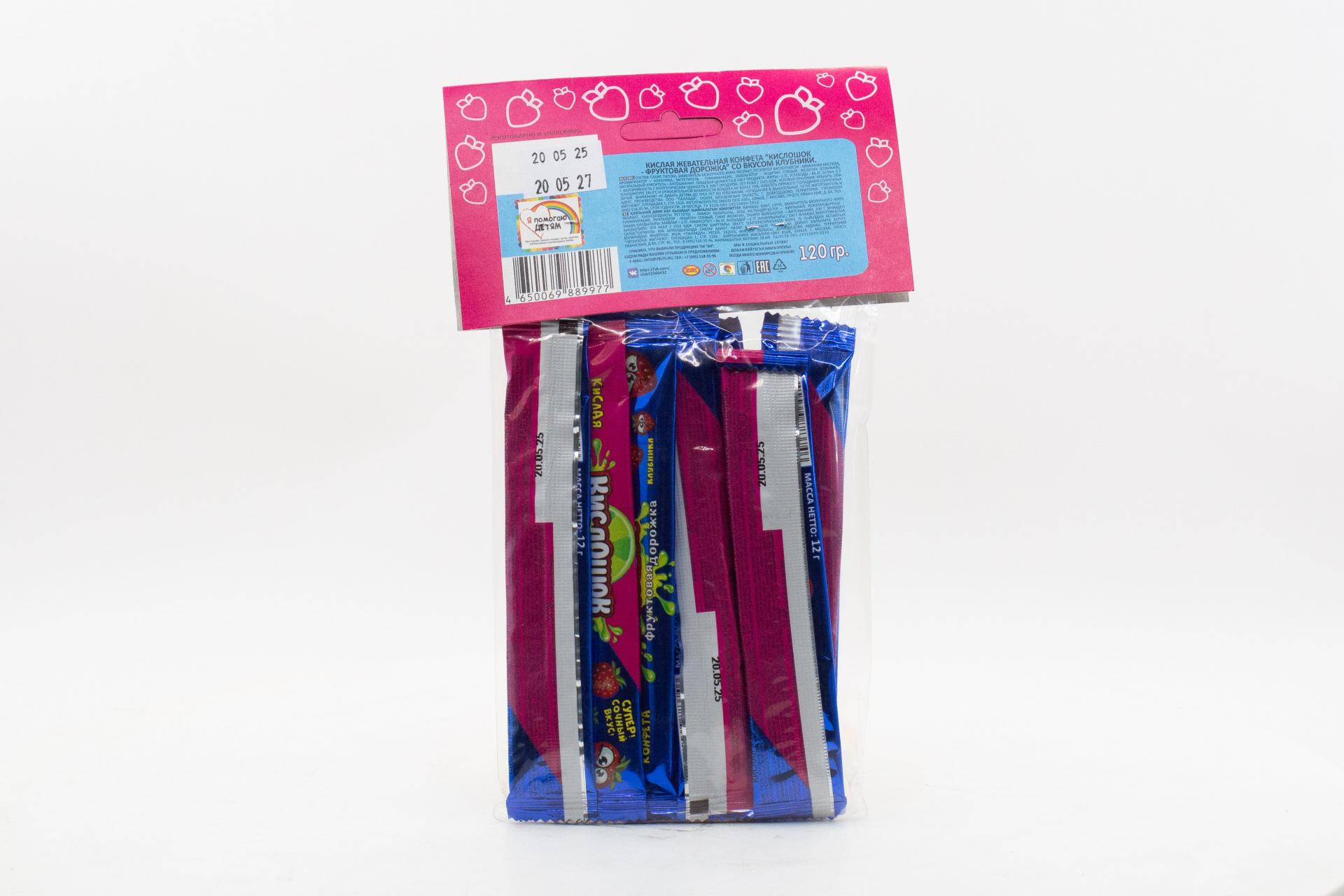 Кислая жевательная конфета Кислошок - фруктовая дорожка 10 со вкусом клубники (Россия) 120г0,00 руб. за штуку (в упак. 36 шт.) |